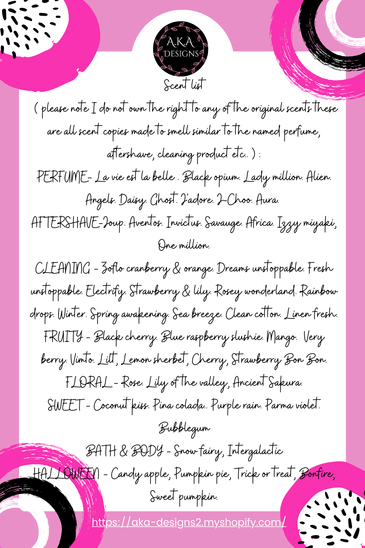 scent list can be found in the images section
