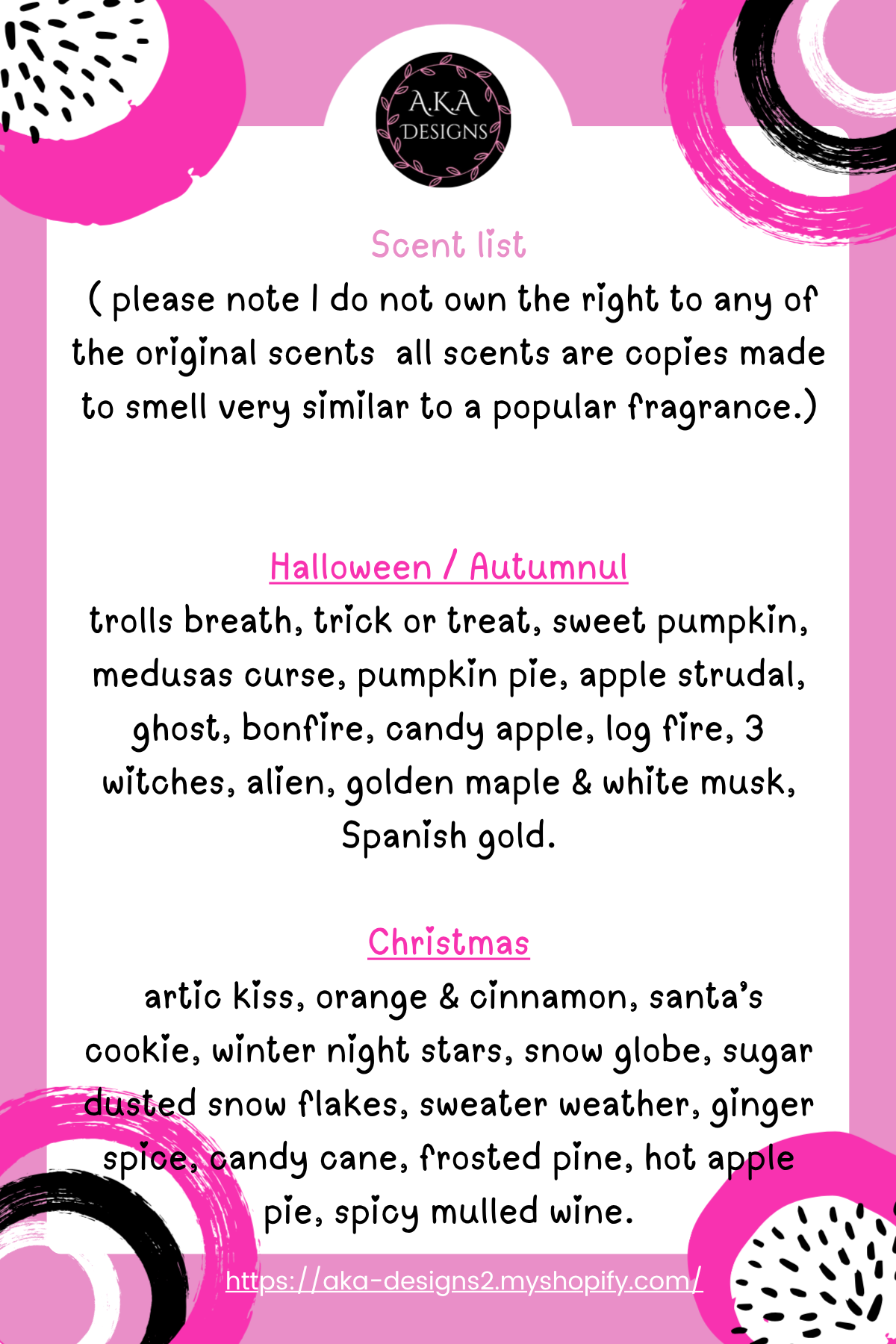 Available in any of our scents (see images for full scent list), you can choose a fragrance that suits your home and your mood. Whether you prefer crisp pine, frosty mint, cosy vanilla, or something completely different, we have the perfect scent for every space.